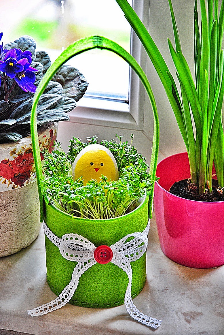 Wielkanoc coraz bliżej, to i ozdób coraz więcej. Tym razem Milena wyczarowała koszyczek dla mamy. Niestety zielony filc już się kończy także musimy zamówić kolejną paczkę, albo kombinować coś z innych kolorów.