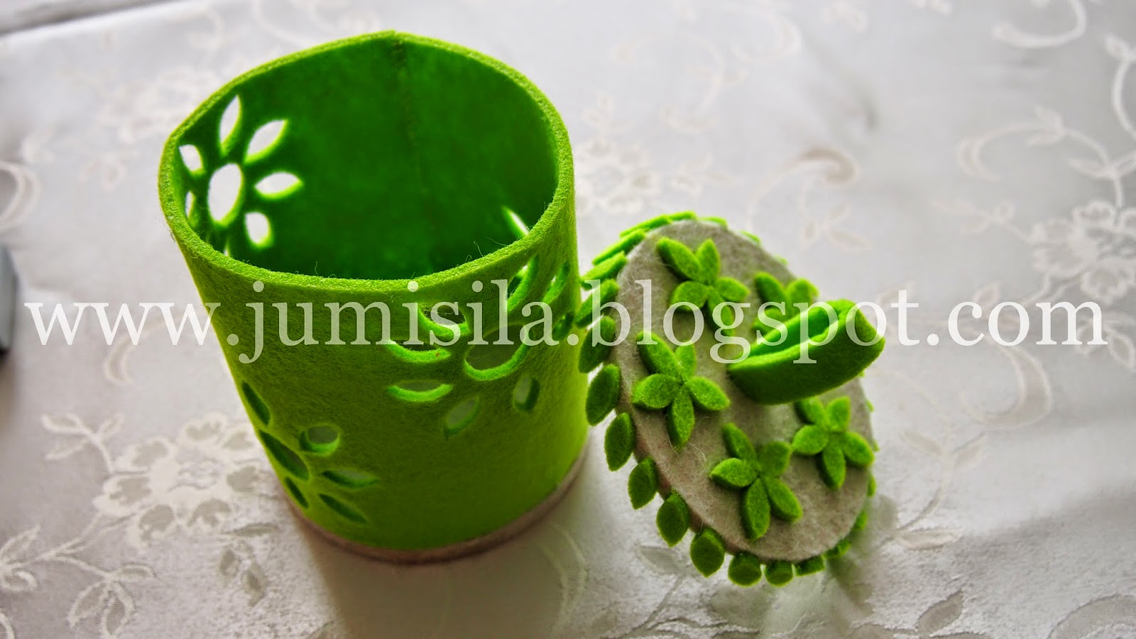 Tym razem z filcu został wyczarowany pojemniczek na różne szpargały.